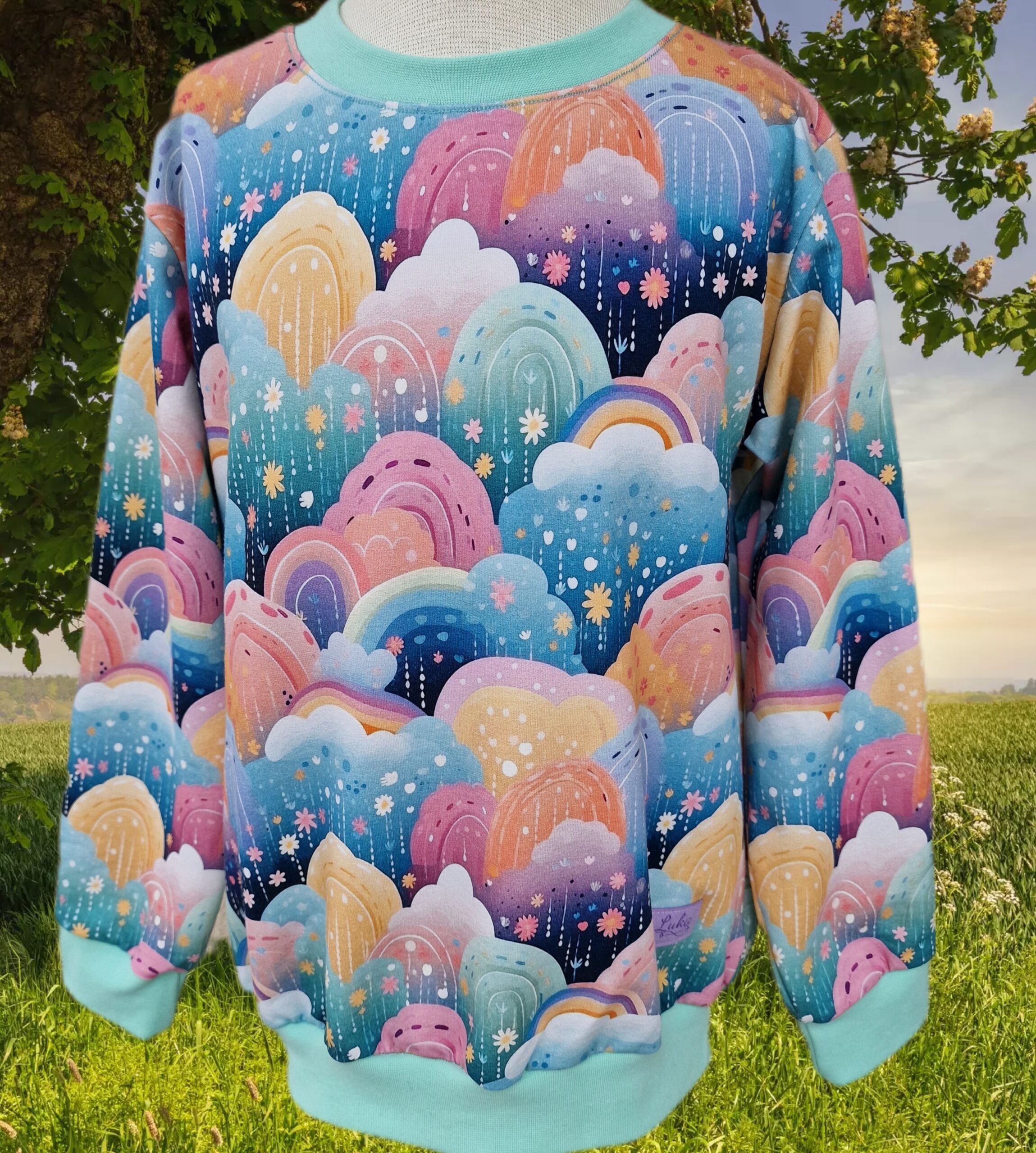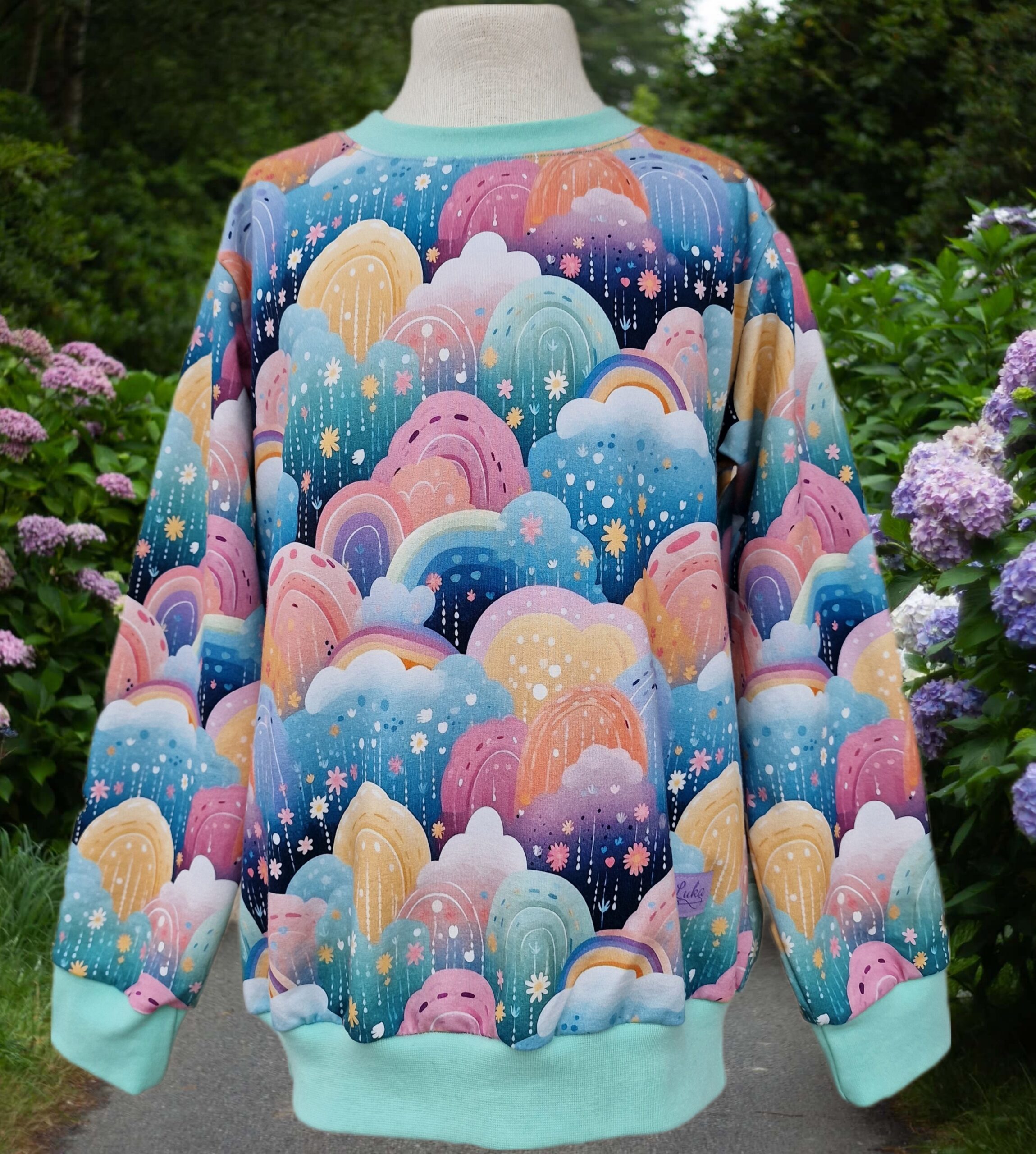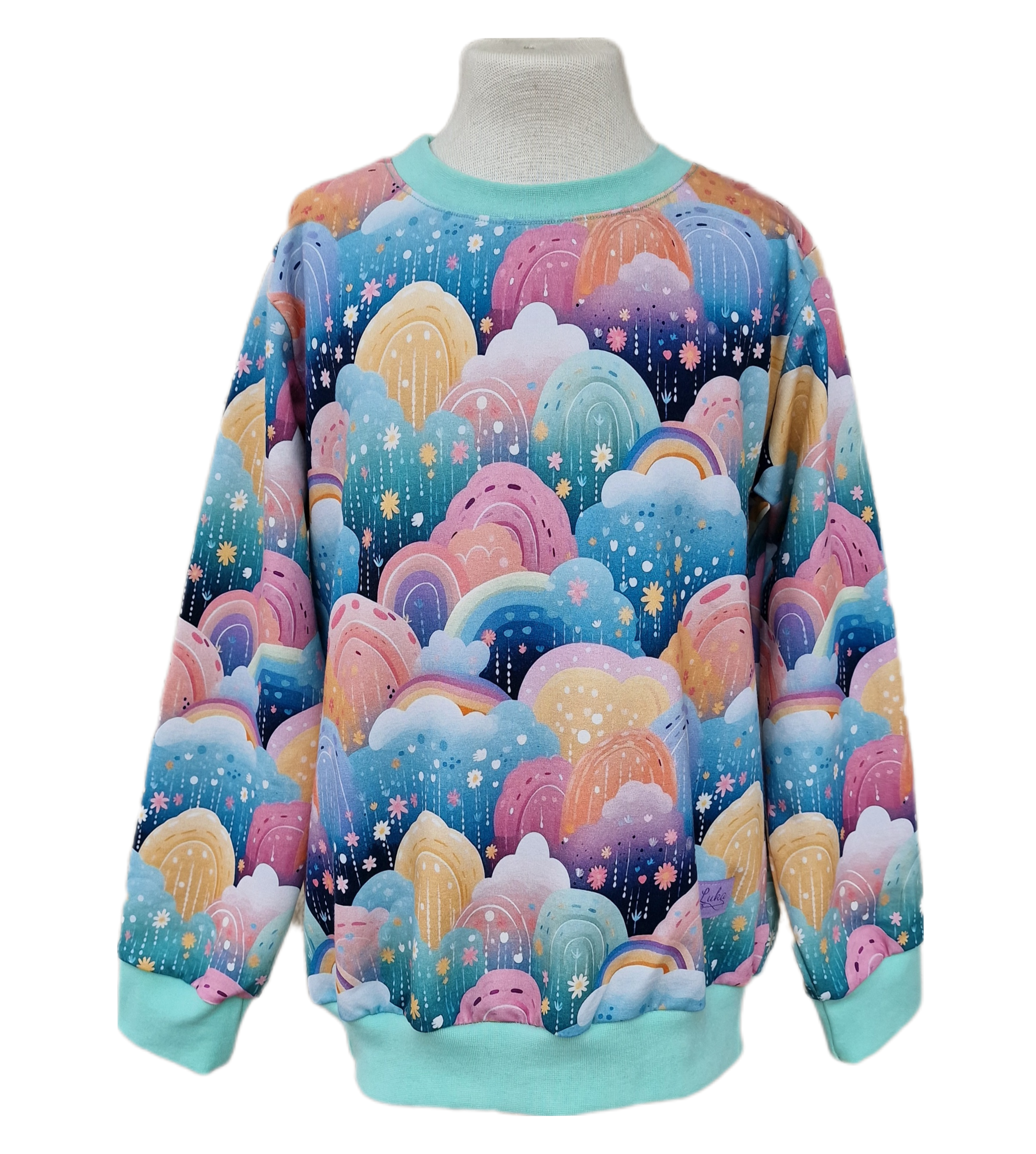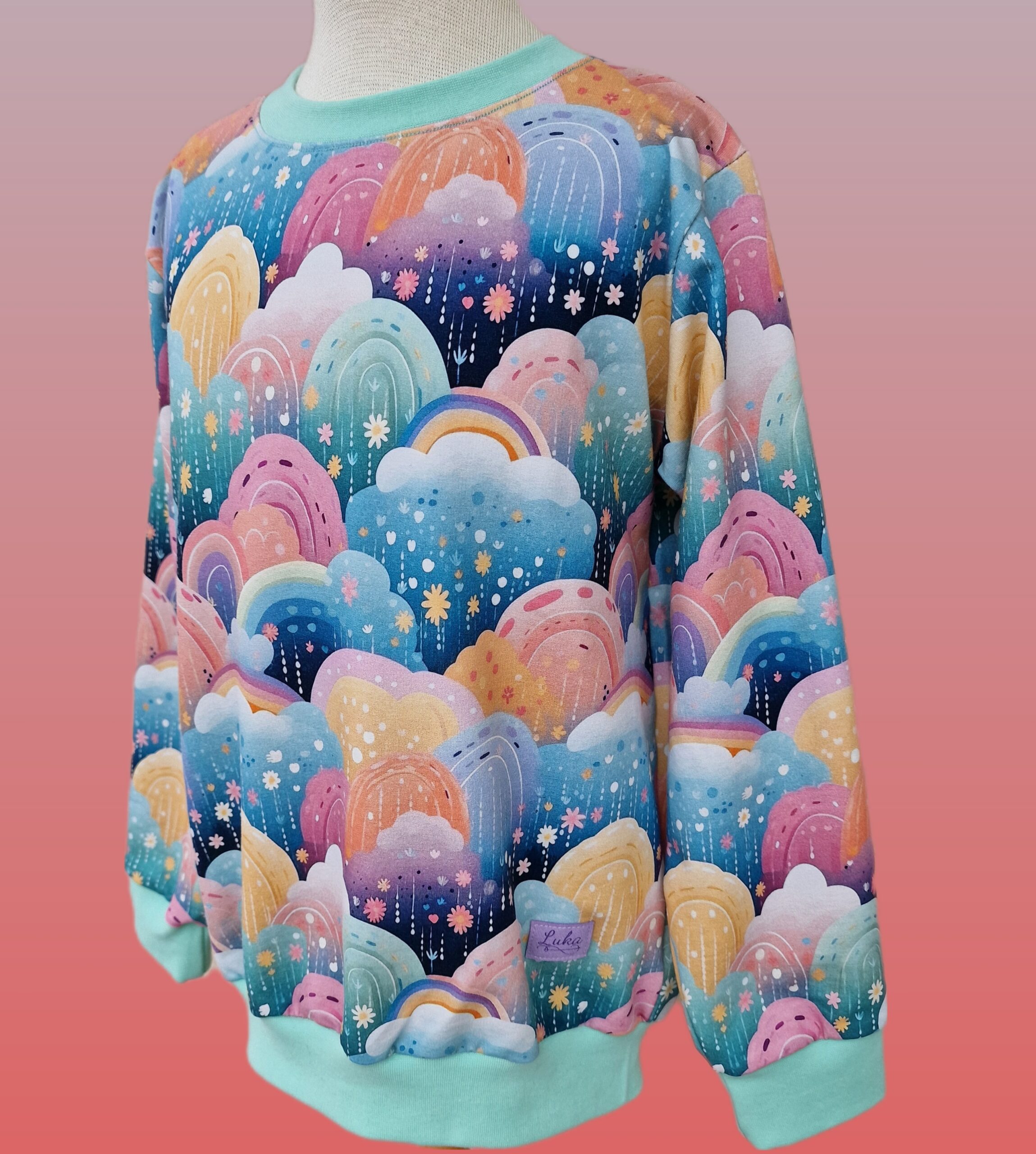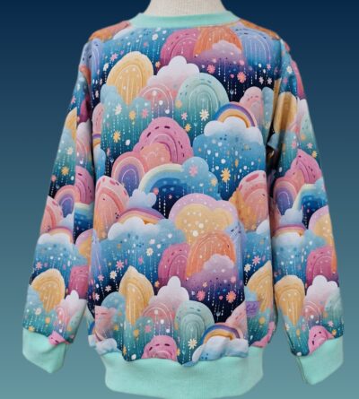 Pulover s simpatičnim oblački in mavricami v nežnih pastelnih odtenkih