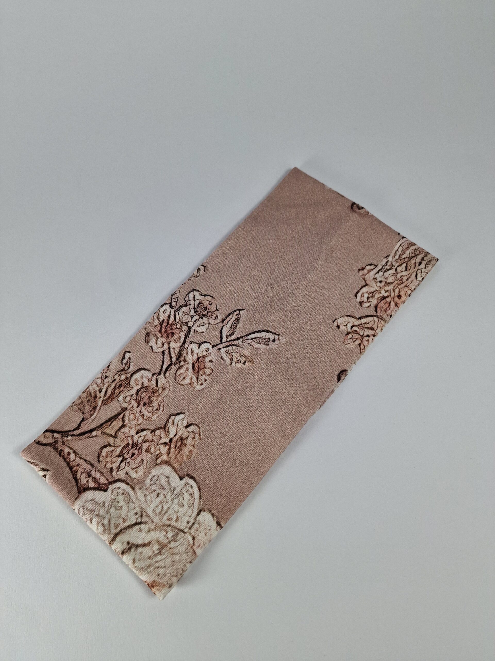 Trak za ušesa z lepim cvetličnim motivom v rjavkastih odtenkih.